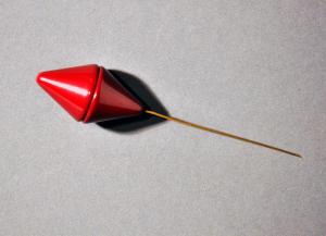 Spillone da cappello in metallo cromato e galalite bordeaux sagomata a guisa di due coni sovrapposti.