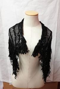 Collo a mantellina in pizzo di seta e spighetta neri con applicazioni di jais; frangia di spighetta nera.