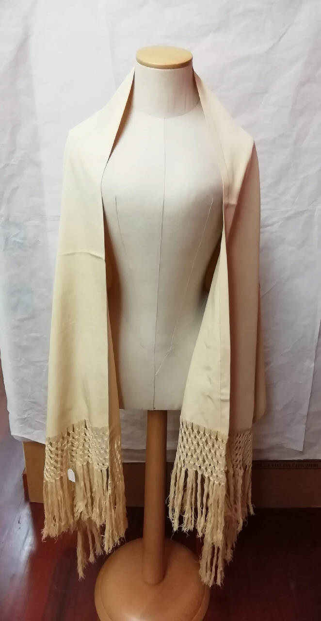 Stola in seta color avorio con frange macramè sulle estremità laterali.