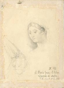 particore di Santa Maria presso San Celso, raffigurante un volto femminile dai tratti delicati realizzato a matita. Il foglio custodisc inoltre uno schizzo di un particolare architettonico della chiesa.
