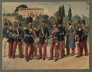 titolo proprio: Repubblica Romana 1848-49: musicanti, mazziere, zappatore, sottufficiale e soldati della fanteria di linea