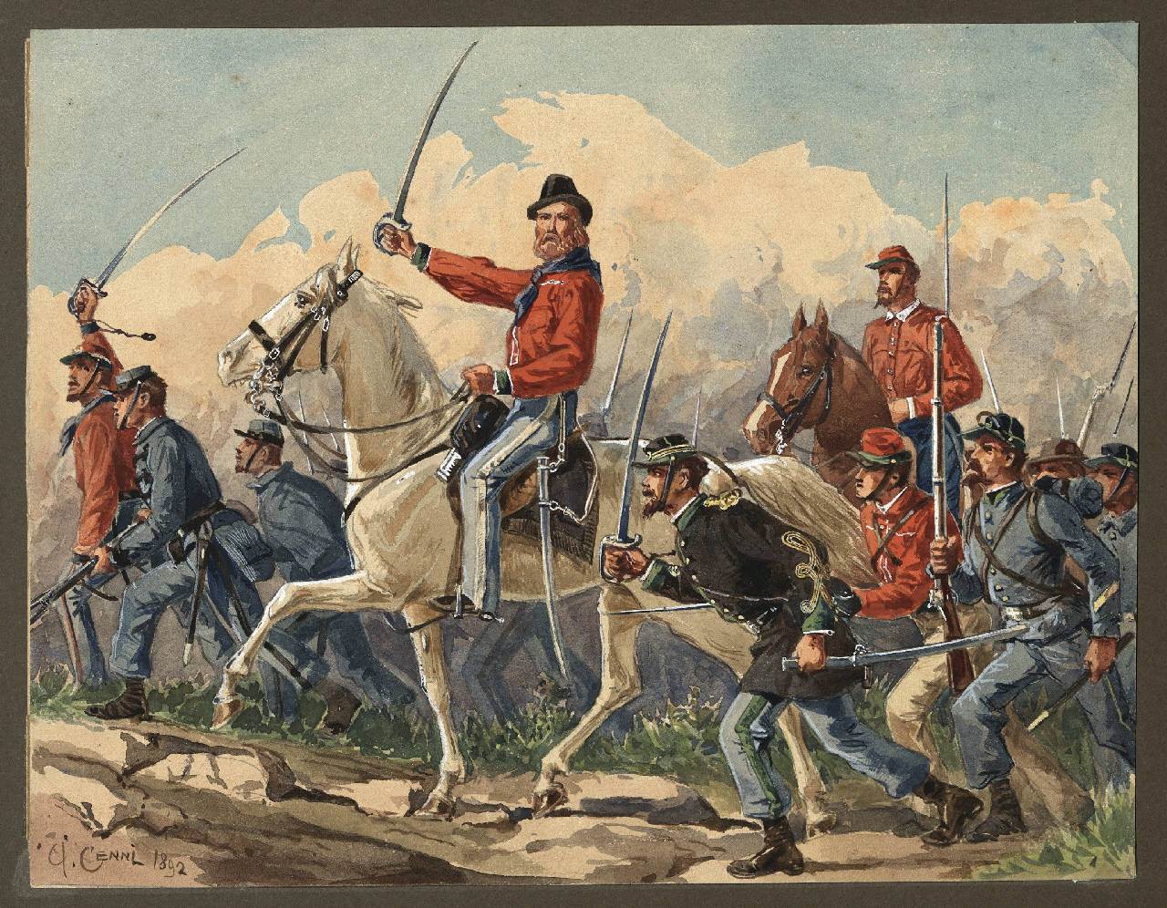 titolo proprio: Garibaldi guida all'assato dei volontari garibaldini, con carabinieri Genovesi e Cacciatori delle Alpi nel 1859
