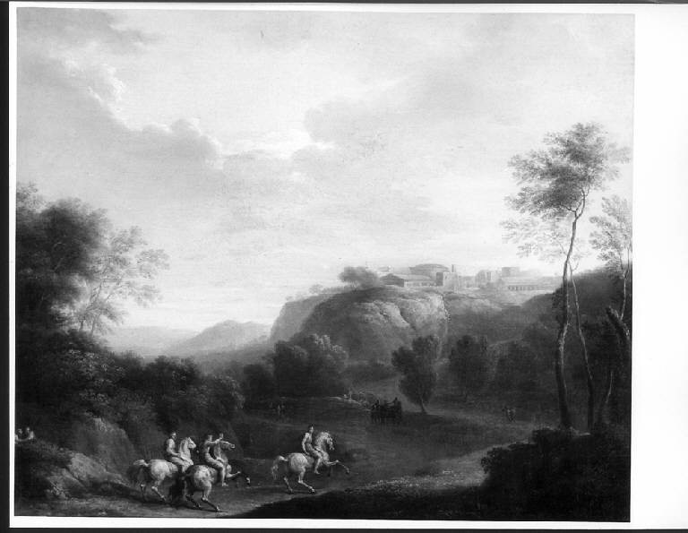 STRADA IN UNA VALLATA CON FIGURE A CAVALLO