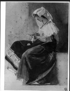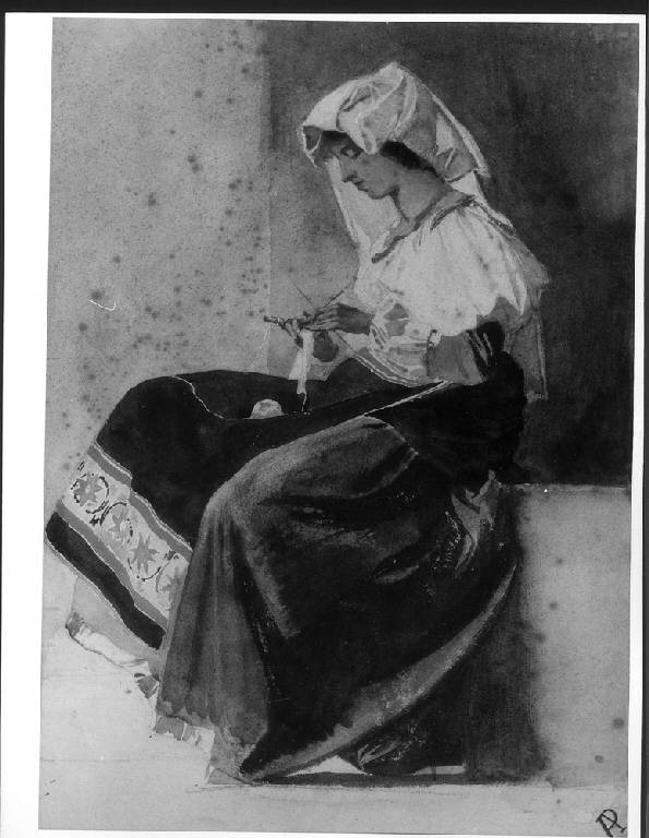 STUDIO DI FIGURA FEMMINILE IN ABITO DA CIOCIARA