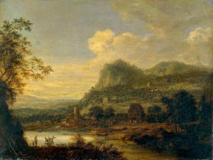 Paesaggio fluviale con architetture. paesaggio fluviale con architetture