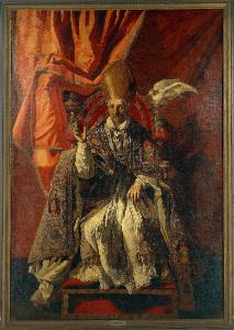 Ritratto del vescovo Nicolò Sfondrati in veste di San Gregorio Magno. ritratto di papa Gregorio Magno