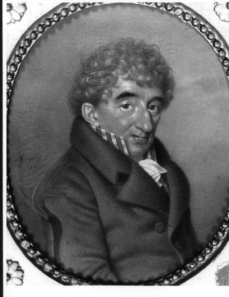 - NOTIZIE STORICO CRITICHE Il ritratto fa parte di una serie di 24 quadretti (di cui 5 di Francesco Bruni ed i restanti di Giovanni Pock) donati dalla contessa Teresa Dugnani all'Ambrosiana nel 1845, mentre non si conosce il momento in cui i ritratti entrarono nella collezione Dugnani.\nI quadretti furono eseguiti a Milano e rappresentano personaggi della nobiltà locale ed ecclesiastici di fine Settecento e primo Ottocento. \nLa realizzazione dei ritratti di Pock avvenne dopo il 1825, data d'arrivo a Milano dell'artista, mentre per quelli del Bruni la datazione può essere ristretta tra gli anni 1819 e 1821, date che si riscontrano sotto la firma dell'artista in due quadretti.\nIl Galbiati (1951) parla di 26 ritratti appesi agli angoli della Sala Pastorale o del Londonio (allora Sala XXI), 21 del Pock e 5 del Bruni, pertanto devono essere andati persi 2quadretti del Pock (raffiguranti il marchese Francesco Casati e il presidente Della Porta).