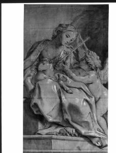 Figura allegorica (Mansuetudine o Modestia) con putto. figura allegorica con putto