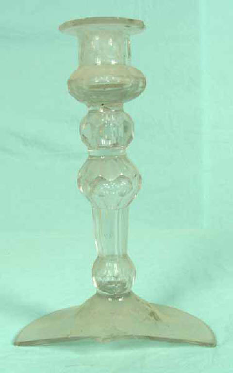 - NOTIZIE STORICO CRITICHE Risulta difficile stabilire se il nostro pezzo appartenga alla produzione boema oppure sia stato prodotto a Venezia dove nel Settecento è documentata l'attività di incisori boemi (BAROVIER MENTASTI 1982, p.155). Nel Settecento a Murano si producevano candelieri in vetro, come documentato da alcuni pezzi conservati nel Museo Vetrario di Murano. Tra questi, uno in particolare presenta qualche affinità stilistica con il nostro pezzo, nel motivo del fusto a molature verticali ad imitazione di modelli della vetraria boema coeva (MARIACHER 1965, p. 62). Un altro pezzo attribuito alla Boemia e conservato nel Rijksmuseum di Amsterdam, decorato anch'esso, come il nostro candeliere con motivi ovali circolari è attribuito alla Boemia (RITSEMA VAN ECK-ZIJLSTRA ZWEENS 1993, p.195, n.311). I motivi ovali e circolari ottenuti per molatura compaiono su alcuni piatti attribuiti sia alla Boemia che a Venezia (THEUERKAUFF LIEDERWALD 1994, pp.158-159, nn.134-138).\nRisulta difficile attribuire con certezza, allo stato attuale degli studi, il nostro pezzo a Venezia o alla Boemia.