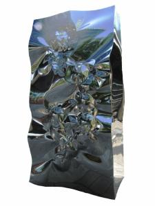 - NOTIZIE STORICO CRITICHE La scultura, alta circa 5 metri, appare come un imponente blocco sinuoso generatore di nitida luminosità, che deriva dall'animato gioco di riflessi, sempre mutevole per il variare della luce atmosferica e per quello dei punti di vista dei passanti.\nE' un'opera che si può definire organicamente ambientale perché sulle sue superfici si specchiano in modo magicamente deformato tutti i più diversi aspetti dello spazio costruito circostante.