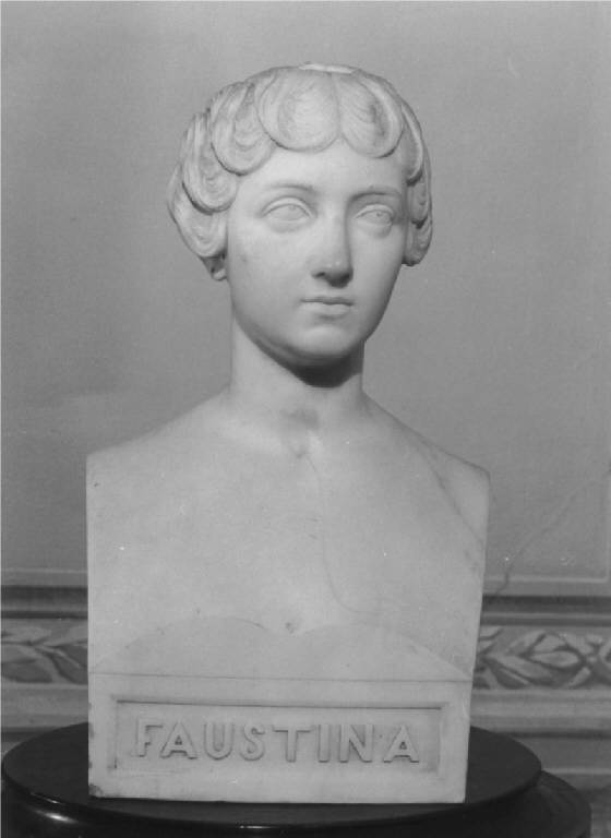 - NOTIZIE STORICO CRITICHE Forse lo scultore voleva rappresentare l'imperatrice romana Faustina moglie di Antonino Pio. Tipica della prima metà del secolo la richiesta della committenza, sia privata aristocratica o borghese, sia pubblica, di soggetti classicheggianti, secondo una già affermata e nobile tradizione, che spesso riesce a riscattare la banalità e il convenzionalismo di tanti monumenti funerari e commemorativi. Quindi anche in questo busto lo spazio ristretto per un tipo di committenza alternativo il peso dell'insegnamento accademico, l'inerzia al rinnovamento insito nel mezzo e nella tecnica della scultura , la difficoltà "di collegare allo spirito moderno un arte la quale parrebbe che dovesse aggirarsi soprattutto nelle memorie antiche" ( Boito 1877 ) danno ragione della lunga permanenza di modi neoclassici fino a tutti gli anni trenta