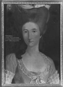 - NOTIZIE STORICO CRITICHE Dipinto di tipo convenzionale realizzato nel sec. XVIII senza particolare abilità da un artista lombardo particolarmente "ritardatario". Datazione confermata dal tipico abbigliamento settecentesco; grande scollatura ornata di pizzi come le maniche probabilmente al gomito e in particolare l'alta e vistosa parrucca in voga alla fine del secolo ( 1794 ca. ) dopo il periodo del "Terrore". Anna Margherita Pallavicino Trivulzio di S. Fiorano ( 1763 - 1083 ) era figlia del marchese Giorgio Gaetano e di Maria Dati della Somaglia ( Calvi 1884, tv. VIII ), aveva sposato il 22 febbraio 1780 il conte Giovanni Giacomo ( nato nel 1734 ) di cui si conservano vari ritratti nella collezione