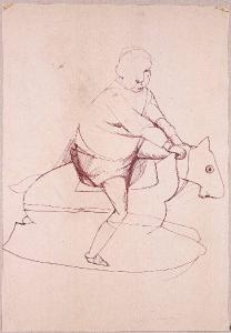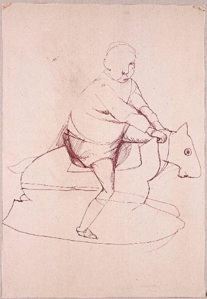 Studio per "fiaba lombarda". Bambino su cavallo a dondolo