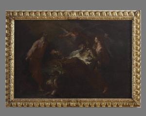 - NOTIZIE STORICO CRITICHE È purtroppo ignota la provenienza di questo dipinto, che, per il formato, poteva in origine ornare una sagrestia o essere destinato alla devozione privata. Il quadro è documentato per la prima volta solamente nel 1895, quando lo troviamo esposto nella Galleria del Palazzo Accademico, correttamente indicato da Intra (nel suo elenco manoscritto) come opera di Giuseppe Bazzani. L'ingresso nelle collezioni municipali dev'essere avvenuto dopo il 1867, poiché le relazioni pubblicate sino al 1868 da d'Arco e Portioli, relative alla formazione delle collezioni civiche, non ne danno conto. È possibile che il dipinto sia giunto al Museo Patrio, forse assieme all'Estasi di una santa dello stesso autore (cat. [494]), per donazione di un privato, di cui purtroppo non ho trovato notizia. Nel 1915 il dipinto viene portato in Palazzo Ducale (cfr. Tamassia 1996, p. 59, descritto come un "soggetto religioso"), dove viene conseguentemente notato da vari studiosi. Nel 1922 ne danno infatti già notizia Pacchioni (1922, pp. 182-184) e Tarchiani (1922, p. 32 n. 79), che lo pubblicano come opera del Bazzani. Il primo studioso che prova anche a dare una collocazione cronologica al dipinto è Ivanoff (1949, p. 78 nota 2), che ritiene la tela un'opera della tarda maturità in cui tuttavia affiorano ricordi di Giovanni Canti, il pittore parmense maestro del Bazzani. La Perina Tellini (1968, p. 110) data il dipinto alla fine del sesto decennio e la proposta è successivamente accolta dagli studiosi; Caroli (1988, p. 204 n. 312) ritiene che l'intero gruppo di dipinti con questo soggetto sia databile agli ultimi anni di attività del pittore e implichi, nella rappresentazione della sofferenza e del trapasso , riferimenti autobiografici. La Tellini Perina (1988, p. 71) suggerisce che un dipinto in collezione privata (quale?) possa essere il bozzetto per il nostro quadro. Sono note, come detto, varie versioni del soggetto nel catalogo del pittore mantovano: la tela in oggetto è quella di dimensioni maggiori e mostra le massime affinità con il dipinto del Musée Départemental de L'Oise di Beauvais (inv. 61 3?) e col dipinto di Motteggiana (cfr. Ca roli 1988, p. 205 nn. 313-314). La tavolozza tendente al monocromo, tutta costruita su colori terrosi e caldi, e la pennellata che vaporizza le anatomie, mi inducono a condividere la datazione tarda - anche se non estrema - proposta da Caroli (1988, p. 204 n. 312).(L'OCCASO 2011,p. 397)
