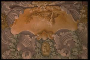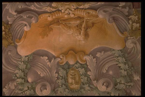 Serie di quattro monocromi ad affresco circondati da motivi decorativi