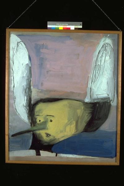 - NOTIZIE STORICO CRITICHE All'opera fu conferito il Premio speciale della giuria al XXXIX Premio Suzzara , 1999.\nL'artista, assai conosciuto autore di cortometraggi e sigle televisive, è meno noto per la sua altrettanto cospicua attività pittorica, che segna un felice incrocio tra arti moderne della visione. Il ritratto di Pinocchio è infatti una riproduzione fotografica incollata alla tela , successivamente rielaborata a mezzo di larghe pennellate che ne alterano la fisionomia, con l'inserzione del lunghissimo naso, che esce dalla riproduzione stessa. L'opera associa l' ironia d'invenzione ad una composizione raffinata, che mostra una completa padronanza dei mezzi tecnici, ed un'espressività che fa del colore una componente primaria della poetica del giovane artista. Associato al dipinto stava un cortometraggio , della durata di 6 minuti, nel quale Pinocchio, viaggiatore senza meta, esprime la sua elastica umanità in spazi scomposti e magici.\nL'artista nasce a San Marino nel 1965. Pittore e illustratore, si occupa prevalentemente di film d'animazione con la realizzazione di cortometraggi, sigle e spot pubblicitari. Tra i suoi numerosi lavori si ricordano: La pista insieme a Simona Mulazzani (1991), Media Salles cinema d'Europa, sigla per il circuito delle sale cinematografiche europee (1992), avanzi, ritratti animatoi di uomini politici, (Rai 3, 1993), la sigla di Tunnel (1994), la sigla di Carosello con Elio e le Storie Tese (Rai 2, 1997), la sigla di Pier Paolo Pasolini, un poeta scomodo (Rai 2), lo spot della Sambuca Molinari.