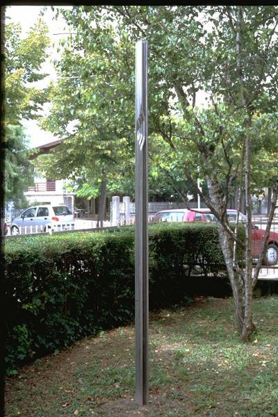 - NOTIZIE STORICO CRITICHE L'opera venne donata alla galleria in occasione della personale del 1983.\nUna sorta di meridiana impossibile, resa attraverso la tessitura di linee d'acciaio, si impenna, e racconta una storia di scarti e di deviazioni, angolosi ed imprevedibili, nervosi e solo attentamente percettibili.\nL'artista nasce a Cagliari nel 1934. Ha studiato a Trieste e a Napoli. Inizia a dipingere nel 154. Dal 1958 al 1961 viaggia nel Sud e nel Nord America ed in Estremo Oriente. Dal 1965 si occupa prevalentemente di scultura.