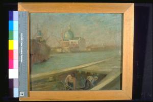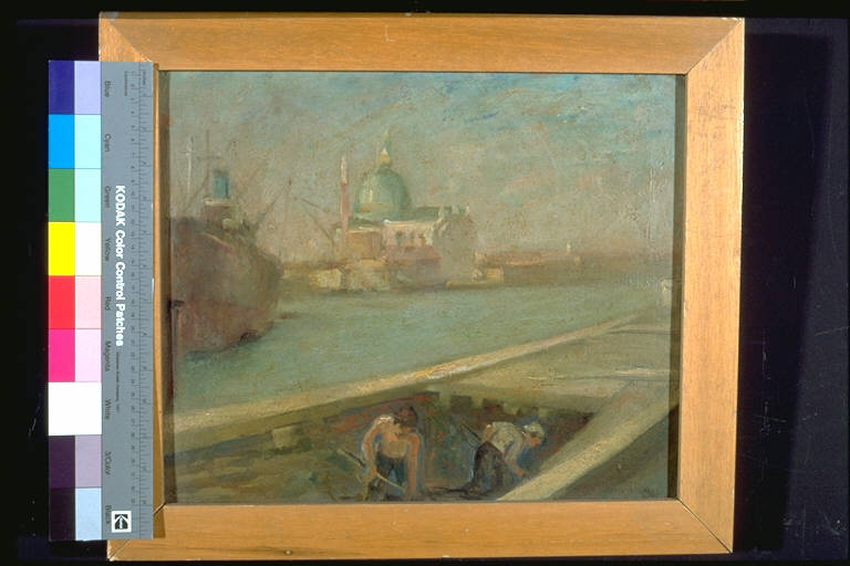 Scaricatori. Veduta di chiesa veneziana e scaricatori