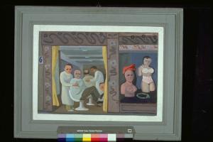 - NOTIZIE STORICO CRITICHE Alla II edizione del Premio Suzzara (1949) vinse una forma di formaggio.\nL'artista comunica un momento di vita quotidiana attraverso un linguaggio essenziale vicino agli esiti dell'arte naif, e che accoglie simbologie di derivazione metafisica. L'opera, inoltre, mostra una certa attenzione alla costruzione e alla scomposizione degli spazi.\nL'artista nasce ad Agnano (Pisa) nel 1898 e muore a Pisa nel 1965. Autodidatta, tiene la sua prima personale nel 1922 in un piccolo paese della provincia di Pisa. Inizialmente si dedica soprattutto all'incisione rappresentando senza enfasi scene di vita quotidiana, nature morte e ritratti. I suoi dipinti dell'inizio, invece, sono di carattere nturalistico e ricalcano la tradizione tardo-macchiaiola.Verso gli anni '30 passa ad una figurazione "simbolica" vicina all'arte metafisica usando un linguaggio artistico vicino al naif di Henri Rousseau. Preferisce i temi legati alla vita quotidiana, i personaggi minori, e gli oggetti di uso comune. Tiene personali a Genova a Firenze e negli Stati Uniti. Nel '50 partecipa alla Biennale di Venezia. Il suo stile degli ultimi anni si fa più aspro, con le immagini chiuse entro un segno fortemente demarcato.