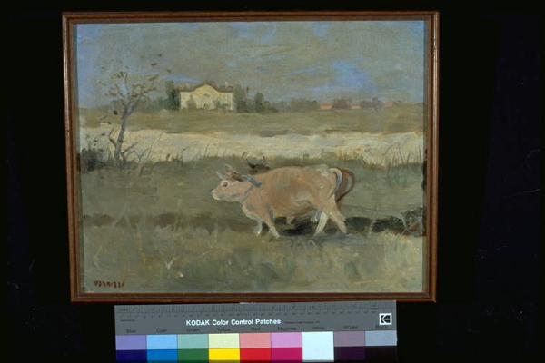 - NOTIZIE STORICO CRITICHE Alla II edizione del Premio Suzzara (1949) vinse 100 bottiglie di vino.\nDipinto di impostazione post-impressionista, inseribile nell'ambito del "Chiarismo Lombardo", cioè di una pittura caratterizzata dalla rappresentazione di atmosfere nitide, dall'attenzione per la resa della luce e dall'uso di tonalità chiare.\nL'artista nasce a Parma nel 1904 e muore a Milano nel 1972. Il padre era decoratore. Vernizzi ha come primo maestro il pittore locale Icilio Bianchi. Compie gli studi all'Accademia di Belle Arti di Parma. Nel 1927 si trasferisce a Milano. In questo periodo abbandona la pittura novecentista degli inizi. Assieme a Del Bon coopera a costituire il gruppo dei chiaristi, del quale faranno parte anche De Amicis, De Rocchi, Spilimbergo. A Milano frequenta vari intellettuali e artisti e conosce Edoardo Persico e Raffaele De Grada. Tra il '41 ed il '45 svolge una serie di caricature contro il regime fascista. Nel '42 tiene la sua prima personale alla Galleria Via Vivaio di Milano. Nel '47 segue un'altra personale alla Galleria Santo SPirito. In quegli anni illustra alcuni racconti di Osvaldo Patani. Nel '49, sempre a Milano, allestisce un'altra personale, vince il Premio Nazionale Salsomaggiore e il Premio Famiglia -meneghina alla prima Mostra Nazionale d'Arte Contemporanea a Milano. Nel '50 gli viene conferito il Premio Tiziano, vince il Premio Città di Gallarate e presenta una personale a Legnano. Inoltre gli viene pubblicata una monografia dall'editore Amilcare Pizzi, a cui ne segue un'altra nel '54. Per tutti gli anni '50 tiene personali, partecipa a Premi e a mostre collettive (nel '56 partecipa alla Quadriennale Romana). Nel '59 soggiorna per qualche tempo a Parigi dove approfondisce lo studio degli Impressionisti. Durante gli anni '60 tiene personali a Firenze, a Parma, a Milano, a Torino (antologica), a Verona, a Monza, a Piacenza e a Padova. Nel '61 vince il Premio Garzanti per il disegno e il Premio Campione d'Italia. Nel '70 a Milano gli viene.dedicata una mostra antologica e nel '71 gli viene conferito il Premio Città di Thiene. Dopo la sua morte a Parma e a Milano gli vengono dedicate diverse retrospettive-antologiche.