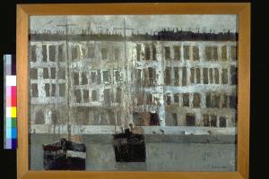 Paesaggio. Paesaggio con casa e imbarcazioni