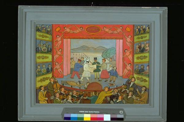 - NOTIZIE STORICO CRITICHE Al IV° Premio Suzzara (1951) vinse una macchina da scrivere.\nL'uso di colori chiari e vivaci e di un disegno volutamente semplice e infantile, richiamano allo stile naif o all'istrazione per bambini.\nL'artista nasce a Napoli nel 1893. Non è pittore professionista, ma cantante, commediografo e attore. Esordisce a Milano nel 1914 con un repertorio di canzoni comiche e sentimentali. Nel 1921 realizza, con F.T. Marinetti, "Il teatro a sorpresa", varato al Mercadante di Napoli da una compagnia da lui stesso diretta. Fra le sue commedie: "Attenti al 7", "Caino e Abele", "La bomba zeta". Dal 1929 al 1939 incide su dischi fonografici circa quattrocento canzoni con parole e musica propri. A lui si deve l'istituzione della Discoteca di Stato.