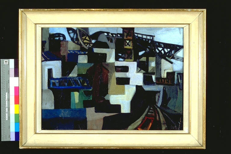 - NOTIZIE STORICO CRITICHE Al V° Premio Suzzara (1952) vinse una forma di formaggio grana e bottiglie di vino pregiato.\nQuest'opera, come la precedente, è avvicinabile alle soluzioni formali della corrente "formalista" di derivazione cubista del dopoguerra.\nL'artista nasce a Coltaro di Sissa (PG) nel 1912 e muore a PArma nel 1986. Si diploma all'Istituto d'arte Toschi di Parma.Studia Scenografia all'Accademia di Brera a Milano. Nel 1939 partecipa alla III Quadriennale di Roma. All'attività di artista affianca quella di insegnante accettando solo gli incarichi che non lo obbligassero ad iscriversi al partito fascista. Dal 1946 partecipa numerose volte a premi e mostre (Premio Piacenza, Premio Modena, Premio Parma, Premio Suzzara). Tra il 1930 ed il 1945 la sua pittura viene influenzata soprattutto dalle correnti del Novecento italiano e poi di Corrente. Successivamente, invece, trova una certa autonomia di visione in correlazione sia col Realismo degli anni '50 che con le tendenze post-cubiste ed informali del dopoguerra. Nel 1950 partecipa alla XXV Biennale di Venezia e ad altre manifestazioni artistiche. Nel 1955 presenta la sua prima personale alla Saletta a Modena. Dal 1965 dirada sempre più le sue partecipazioni a mostre per finire a dipingere in solitudine e concedendo solo qualche personale. Nel 1980 riceve il Premio Fiorino d'Oro e nel 1986 gli viene dedicata una mostra antologica.
