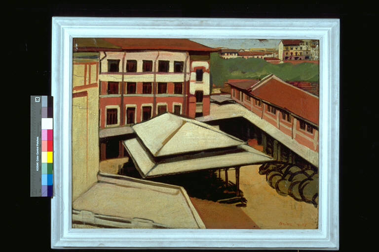 - NOTIZIE STORICO CRITICHE Alla VIIIà edizione del Premio Suzzara (1955) vinse una macchina da scrivere.\nDescrizione nitida attraverso forme regolari. La qualità cromatica è prevalentemente impostata sul bianco e sul rosso mattone. Dal punto di vista della composizione formale prevale l'uso della forma rettangolare e di quella triangolare.\nL'artista nasce a Roma nel 1907 e muore a Milano nel 1957. Compie studi classici a piacenza e studia pittura all'Accademia di Brera di Milano. Nel clima di "Valori Plastici" e di "Novecento" si interessa al recupero della tradizione italiana (Piero Della Francesca, Giotto). Nel 1931 tiene la sua prima mostra a Piacenza con trenta opere di carattere novecentista. Nel 1934 è presente alla Quadriennale di Roma. Partecipa allo spirito di rinnovamento del gruppo di Corrente pur non facendone parte. Attraverso i suoi quadri intende trasmettere un messaggio morale e di verità. Nei suoi dipinti a sfondo sociale (Protesta delle mondine) il suo modello ispiratore è il Picasso di "Guernica". Nel 1946 partecipa alla fondazione del gruppo realista milanese dei "15 di Borgonuovo" con i quali espone invarie occasioni. Partecipa al Premio Francavilla e alla Quadriennale del '48 ed a varie edizioni del Premio Suzzara. La sua pittura non trova largo consenso, così si isola sempre più dal contesto artistico