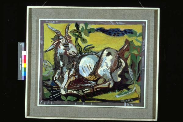 La capra. Rappresentazione di una capra sdraiata