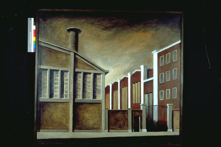 - NOTIZIE STORICO CRITICHE Al XXXVII° Premio Suzzara (1997) vinse il premio acquisto ex-aequo con Guaitamacchi, Wolfango, Kim Hwal Kyung, Martinelli.\nLa veduta industriale è rappresentata in una sorta di immobile sospensione temporale, di taglio molto classico, memore in questo della tradizione della metafisica e delle vedute urbane ottocentesche. \nMarco Petrus è nato a Rimini nel 1960, vive e lavora a Milano. Nel 1990 è invitato alla Sesta Triennale dell'incisione a Palazzo della Permanente, a Milano. Nel 1991 ha il suo esordio pittorico con la rassegna Arte giovane in Lombardia a Cremona e con la personale alla Galleria Noa di Milano. Nel corso di quell'anno inizia a partecipare alla rassegna itinerante del gruppo Venature. Nel 1992 partecipa alla mostra Abitare il tempo con un'installazione ambientale. Nel 1993 riceve il Premio San Carlo Borromeo della Regione Lombardia al Palazzo della Permanente di Milano ed espone al Centro S.Fedele in una mostra personale, presentato da Rossana Bossaglia e Alessandro Riva. Nel 1994 partecipa alla rassegna Reale e immaginario a Santa Maria della Pietà, a Cremona. Del 1995 è la personale a Piacenza alla Galleria Il Cenacolo, con la presentazione di Mario De Micheli. Sempre nel '95 partecipa alle mostre Cento artisti per la città al Palazzo della Permanente (a cura di Rossana Bossaglia) e Il sentimento della città, alla Fondazione Corrente (a cura di Antonello Negri). Nello stesso anno è a Berlino alla AEG con il gruppo Venature e al Museo di Pully (Losanna) nella mostra Interprètations urbaines. Nel 1996 tiene una mostra personale a Pavia, da Monopoli arte contemporanea. Nel 1997 il mensile Linea d'ombra gli dedica la copertina con un testo critico di Alberto Rollo; partecipa alla mostra Esterno Città alla Galleria Appiani Arte di Milano e tiene \n© Serge PICARD una personale alla Galleria S.Pantalon di Venezia. E' tra i premiati al Premio Morlotti - Imbersago e al PremioSuzzara. Nel 1998 è presente ad Arte Fiera, a Bologna, con la Galleria Appiani Arte: per l'occasione viene presentato il libro Officina milanese di Alessandro Riva. Tiene una personale alla Galleria Aldo Mari di Imbersago ed è invitato al XXXI° Premio Vasto. Partecipa alla mostra "Cronache Vere" a cura di A.Riva presso lo Spazio Consolo di Milano. E' presente nella Collezione permanente del Museo d'Arte dello Splendore di Giulianova. Con l'editore Marcos y Marcos ha pubblicato La città vivibile con le poesie di Giovanni Gardella (1994) e Parlare al muro con le poesie di Umberto Fiori (1996).