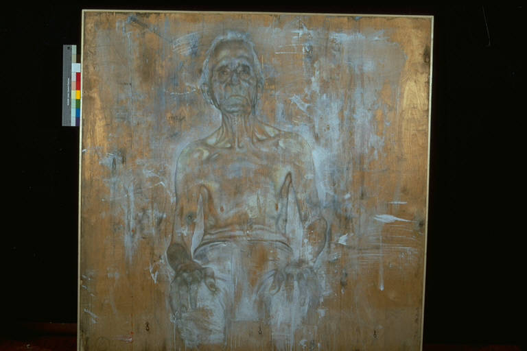 - NOTIZIE STORICO CRITICHE Al XXXVII° Premio Suzzara (1997) vinse il premio acquisto ex-aequo con Guaitamacchi, Wolfango, Kim Hwal Kyung, Petrus.\nL'opera, nella sua sensibilissima opera di analisi di ogni ruga dell'anziano rappresentato, di ogni riverbero di luce sul suo corpo, riporta alle "notomie" leonardesche e a rembrandtiane lezioni di anatomia. Il pigmento registra ogni forma ed ogni asperità, vi è come uno scandaglio in una realtà corporale, considerata non come manifesto di altre intenzioni, ma presa come occasione per l'esercizio del puro segno cromatico .\nL'artista è nato nel 1965 a Prato, dove tuttora vive e lavora. Dopo il diploma all'Istituto d'Arte di Porta Romana a Firenze, inizia una breve ma intensa attività di incisore. Nel 1988 l'Accademia delle Arti del Disegno di Firenze gli assegna il "Premio Tito Conti". Decisivo è l'incontro, nel `92, con Testori, che lo inserirà nell'ambiente milanese della Compagnia del Disegno. Da quel momento si sussegue una lunga serie di mostre personali e collettive, fino all'ultimo riconoscimento quale vincitore del XXXVII Premio Suzzara (1° premio ex-aequo).