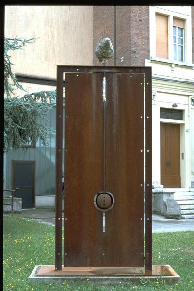 - NOTIZIE STORICO CRITICHE All'opera venne attribuita una menzione speciale al XXXIII° Premio Suzzara - 1993.\nL'opera presenta un approccio espressivo fatto di relazioni spaziali in movimento, con estrapolazione dei concetti di interno-esterno, fisso-mobile-mobile in apparenza ma in realtà fisso, con illusione del visibile a favore di una spazialità esperibile e praticabile. L'artista è inoltre impegnato nella ricerca di un dialogo funzionale tra la superficie ed il volume dell'elemento che si trova alla sommità, che prende possesso dello spazio, in contrasto con la dimensione lineare del costituente principale, all'interno del quale emerge l'iconografia plastica della sfera, radicata nella cultura antropologica.\nL'artista nasce a Benevento nel 1952. Vive e lavora a Padova e Milano. Ha partecipato nel 1988 alla Biennale di Venezia, Sezione "scultori ai giardini". \nLe sue opere sono esposte in numerosi musei di arte contemporanea sia italiani che esteri. Ha al suo attivo la partecipazione a numerose mostre collettive e personali.
