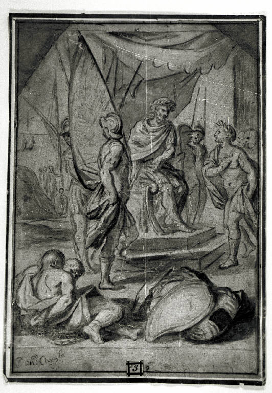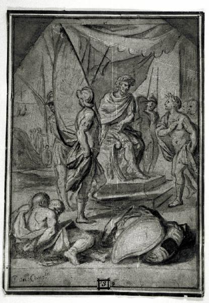 Guerriero vittorioso davanti all'imperatore con prigionieri