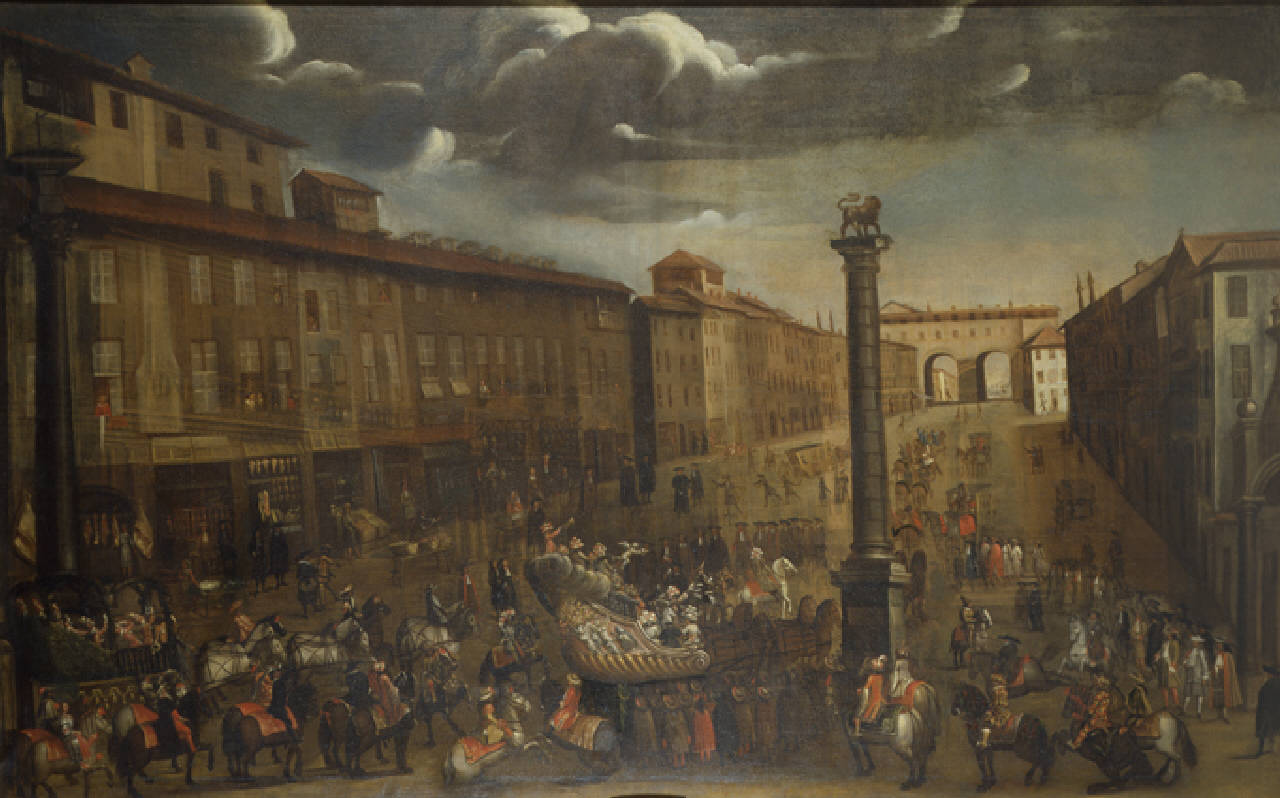 I carri carnevaleschi sul Corso di Porta Orientale. Largo San Babila e Corso di Porta Orientale a Milano con carri carnevaleschi