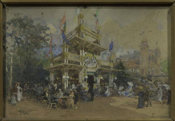 Esposizione Internazionale 1906, chiosco bar internazionale. Padiglioni dell'Esposizione Internazionale del 1906. Il chiosco del bar internazionale all'Esposizione del 1906 a Milano