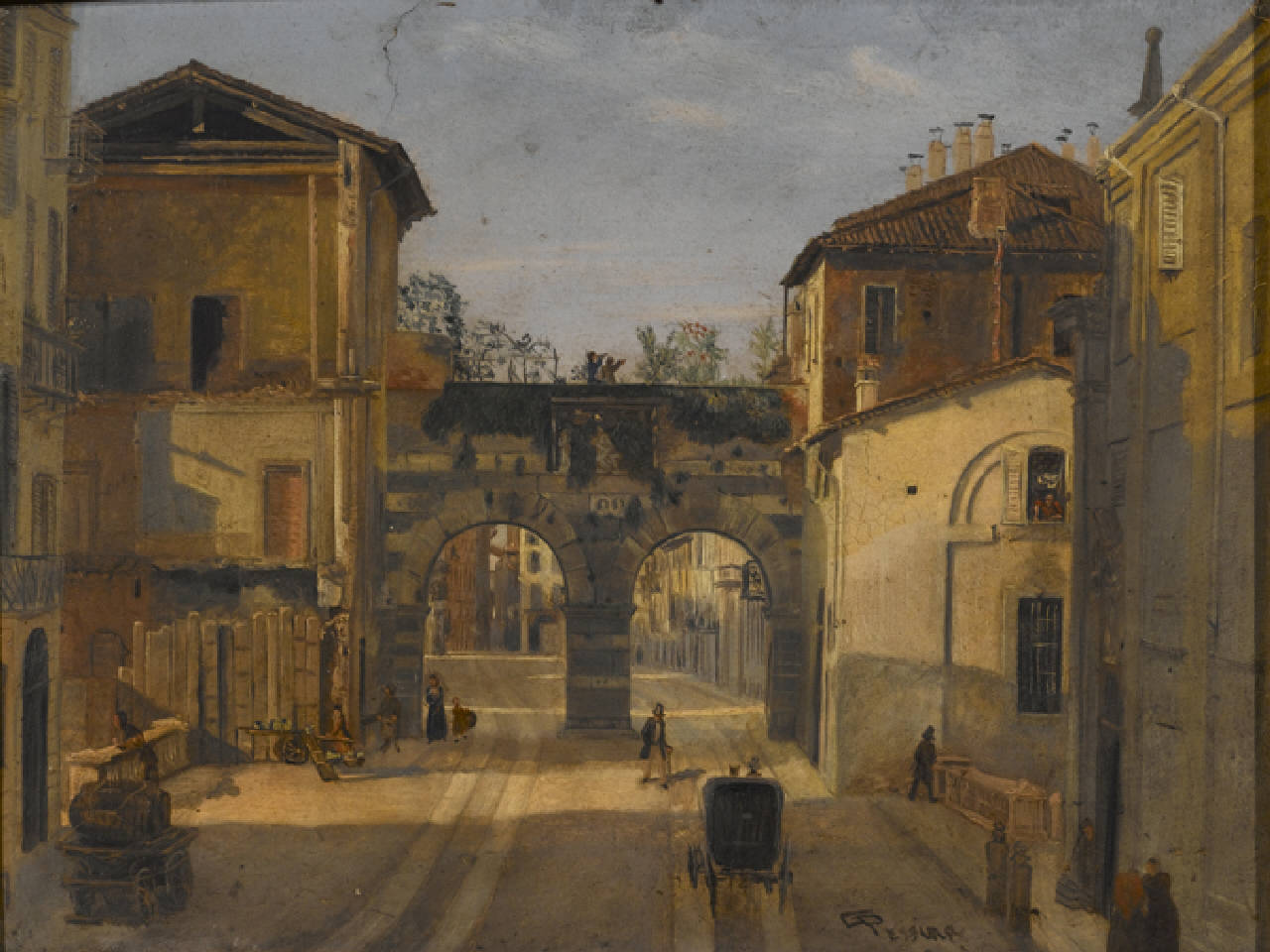Gli archi di Porta Nuova. Vecchi Portoni di Porta Nuova. Gli archi di Porta Nuova a Milano intorno al 1854