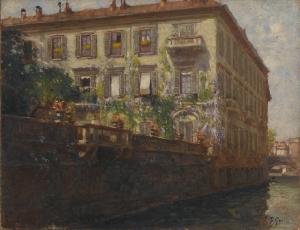 Palazzo Silvestri sul Naviglio. Palazzo Silvestri a Milano intorno al 1917 con la facciata lungo il naviglio