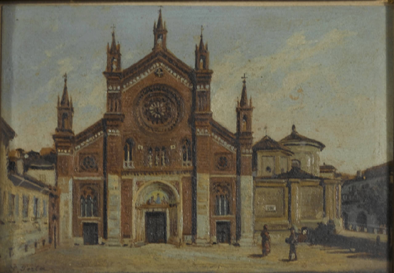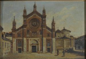Facciata di San Marco dopo i restauri. Piazza San Marco a Milano con la facciata della chiesa dopo i restauri del 1882