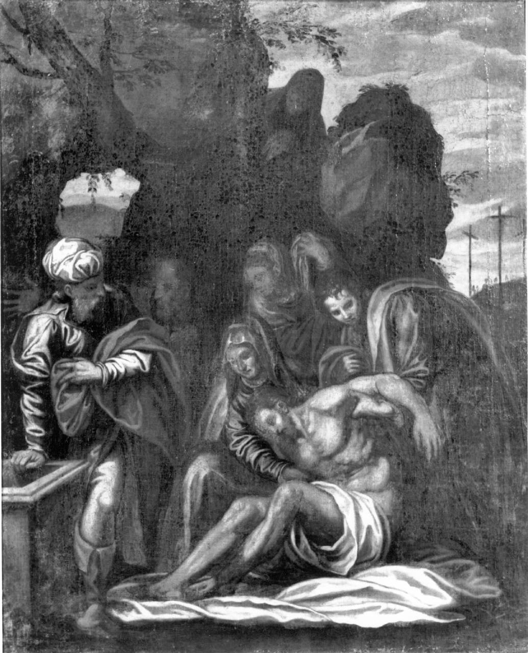 - NOTIZIE STORICO CRITICHE Monica Ibsen (2010, comunicazione orale) ha orientato il dipinto, in precedenza attributo a scuola veronese, verso Orazio Farinati che, a fronte della qualità della stesura pittorica, sembra comunque una soluzione preferibile all'autografia del padre Paolo.\nMarco Albertario\n\nInedito (il dipinto non è citato nemmeno in G. Baldissin Molli 1999). Il dipinto di Lovere costituisce una variante inedita di quella in collezione privata firmata e datata 1585: S. Marinelli 1988, pp. 349-350, cat. 59, ripubblicata da Francesca Rossi 2005. Un paragone di collezione privata con lo stesso tema iconografico (cm 34 x 28,5) e il relativo disegno dello Statens Museum for Kunst di Copenhagen è pubblicato da Gianni Peretti 2005.\nMattia Vinco