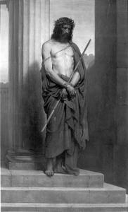 - NOTIZIE STORICO CRITICHE Nella minuta di una lettera riferibile al luglio 1875 Francesco Hayez ammette la difficoltà a concludere "L'Ecce Homo ed una Vergine" che "dopo aver mancato per otto anni ho dato la mia parola di spedire a Lovere" alla nipote Carlotta Martinolli Banzolini. Nelle successive versioni si fa riferimento genericamente ad "alcuni dipinti, come l'Ecce Homo ed un piccolo quadretto", o semplicemente del "puntiglio di mantenere la promessa che ho dato a mia nipote di fare avere il dipinto l'Ecce Homo pei primi del venturo Agosto". \nL'Ecce Homo, estremo capolavoro della pittura sacra di Hayez, impegnò a lungo il pittore e la struttura della tela tradisce il lungo travaglio per raggiungere quell'effetto di monumentalità che ne avrebbe giustificato la collocazione elevata. In particolare, l'aggiunta in corso d'opera di circa trenta cm di tela, ben evidente anche ad una superficiale osservazione, accentua l'effetto scenografico innalzando e nel contempo allontanando la figura del Cristo. Hayez vi lavorava ancora nel settembre 1874, e nel giugno 1875 lo dava per quasi compiuto, compiacendosi della propria capacità di dipingere a malgrado le condizioni di salute non buone. La tela fu in effetti spedita a Lovere nel luglio 1875 e da subito esposta, stanti le grandi dimensioni (singolari, per un'opera realizzata senza una precisa destinazione) nelle Sale dell'Accademia Tadini con il beneplacito dello stesso artista. \nIl 30 dicembre 1899 i nipoti ed eredi di Carlotta (Clelia, Giuseppina e Amelia, figlie di Giovanni Battista Banzolini, e Maria Emilia e Teresa, figlie di Giovanni Battista Banzolini) confermavano la donazione dell'Ecce Homo e dell'Autoritratto (sono puntualmente registrati nelle guide della Galleria pubblicate nel 1903 e nel 1929)\nM. Albertario