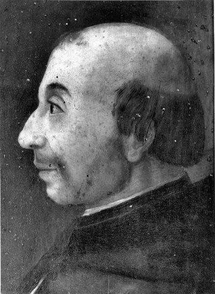 - NOTIZIE STORICO CRITICHE Sul verso della tavola c'è un abbozzo di una Madonna con Bambino, di grande interesse, inedita (?).\nM. Albertario\n\nDi ritratti di profilo autonomi del vescovo veronese Gian Matteo Giberti si conoscono altre due versioni, (cm 22 x 16.5) la tavoletta del Museo di Castelvecchio (inv. 1601) e la replica del Museo del Prado, attribuite da S. Marinelli 1988 a Bernardino India , databili alla fase tarda del pittore, circa 1567 . Interessante che il dipinto di Lovere sia su tavola, con un taglio più ravvicinato e di misure maggiori. Stilisticamente sembra diverso da quelli di India; direi che è più vicino ai ritratti "realistici" dipinti da Domenico Brusasorci nel salone dei vescovi presso il Vescovado di Verona e nella pala della chiesa di Santo Stefano, sempre a Verona. \nNel caso in cui non ci si trovi di fronte a una derivazione da un originale perduto, si potrebbe avanzare un'attribuzione ad Orlando Flacco, da confermare con lo studio diretto dell'opera.\nM. Vinco\n\nSu tutta la questione della ritrattistica gibertiana, rispetto alla quale la tavola di Lovere si configura come un esemplare precoce, si veda da ultimo B.M. Savy in Museo di Castelvecchio 2018, pp. 70-71 cat. 71.
