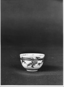 Tazzina a ciotola senza ansa, ornate sul bordo a fiorellini e oro, e a fiori disposti a festone. All'interno ornato a viticcio sull'orlo e stella sul fondo