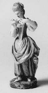 - NOTIZIE STORICO CRITICHE Come suggeritomi da Marco Albertario, la presenza della sigla "S" sotto il basamento e il confronto con un'altra statuetta con figura di gentiluomo della collezione Tadini (inv. H25) attribuito alla produzione realizzata dal modellatore Giovanni Schettino per la Reale Fabbrica di Porcellana di Napoli, permettono di ricondurre anche questa statuetta - fino ad ora genericamente riferita alla Fabbrica di Capodimonte - al medesimo modellatore. \nPer un catalogo delle opere di Schettino, si veda A. Caròla Perrotti (1978, 1986 e 2006).\nIlaria De Palma