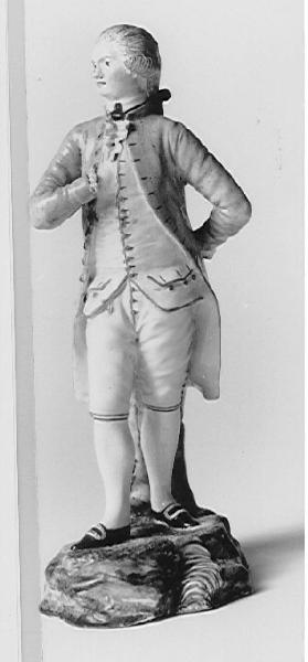 - NOTIZIE STORICO CRITICHE La presenza di una sigla, "S", rilevabile sotto il basamento della figura, e il confronto con la figura di gentiluomo conservata presso il Museo di Capodimonte hanno consentito di proporre per la figura, fin qui genericamente riferita alla Fabbrica di Capodimonte, alla produzione realizzata dal modellatore Giovanni Schettino per la Reale Fabbrica di Porcellana di Napoli. \nSchettino è documentato presso la manifattura nel 1796-1797 e ancora nel 1799, ma la figura in esame presenta stretti rapporti formali con le figure che, per la presenza di una vernice a base di stagno che copre la porcellana, vanno messe in rapporto con l'attività della manifattura napoletana negli anni 1784-1788. \nSi profilerebbe quindi per il modellatore un periodo di attività piuttosto lungo, conclusosi nel 1799, quando Domenico Venuti gli concede una sorta di indennità al momento del ritiro dal lavoro. \nLe opere che gli sono state fino ad ora attribuite (per le quali si rimanda a A. Caròla Perrotti 1978, 1986 e 2006) fanno riferimento ad un preciso gusto per l'impostazione elegante della figura, a contrasto con l'espressione piuttosto fissa e rigida dei volti.\nMarco Albertario