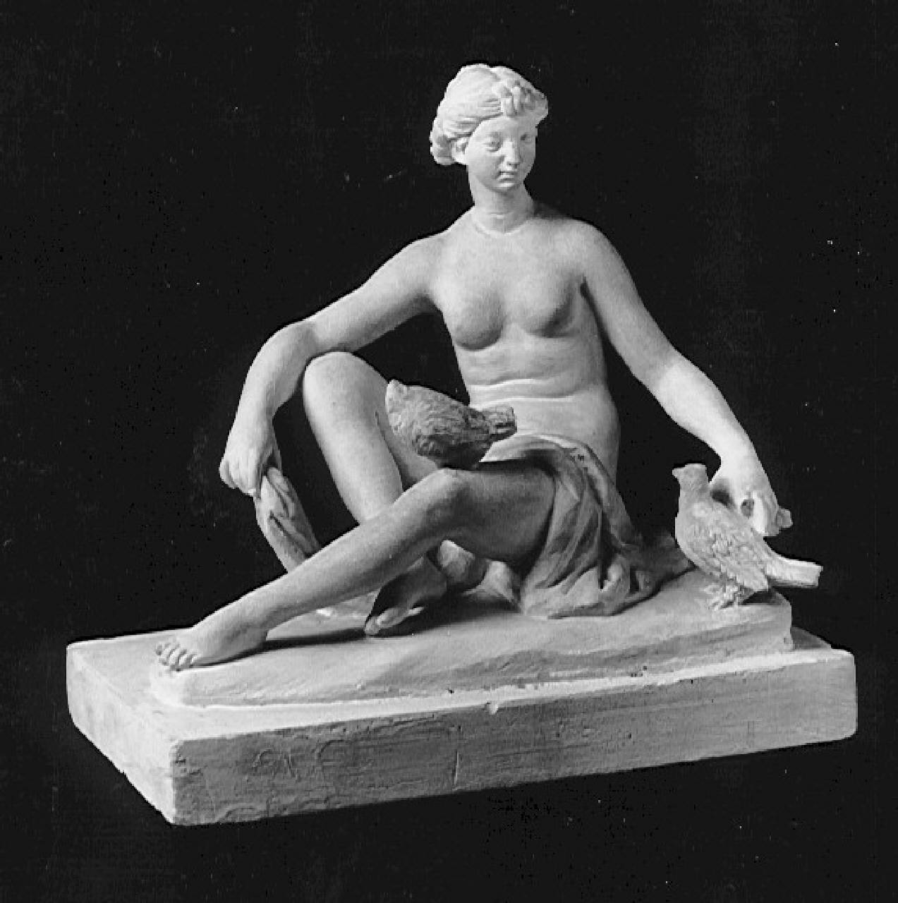 Venere. Figura di donna seduta con due colombe