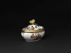 - NOTIZIE STORICO CRITICHE I tre pezzi (cioccolatiera, H 131; lattiera, H 132; zuccheriera, H 133), stilisticamente omogenei anche se non tutti provvisti di marca, compongono un servizio da té sono databili al terzo periodo della manifattura (1784-1864), quello della gestione di Sorgenthal, che segna una definitiva svolta verso il Neoclassicismo; la data trova conferma nella marca, costituita da uno scudo blu tripartito (I. De Palma 2011).