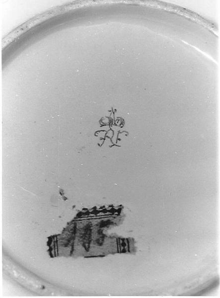 - NOTIZIE STORICO CRITICHE Le due tazzine documentano un decoro con figure di "acrobati", noti anche attraverso altri pezzi da un servizio da tè (tre tazze, la zuccheriera e quattro piattini) conservati a Milano, presso il Museo Teatrale alla Scala (G. Lise 1975, p. 244 n. 604). La circolazione dei motivi è documentata anche dalle incisioni del Voyage (1782). \nLa presenza della marca "FRF", con riferimento alla Real Fabbrica Ferdinandea, consente di datare i pezzi al primo periodo della gestione di Domenico Venuti, che impresse alla produzione napoletana un raffinato gusto "all'antica": la serie si data infatti agli anni 1773-1787, con una preferenza per quest'ultimo termine (A. Mottola Molfino 1977, figg. 278-279 data i pezzi al 1785 ca.). Dal punto di vista tecnico, i quattro pezzi loveresi documentano quella fase della produzione della Real Fabbrica nell'ambito della quale l'uso di una particolare miscela di caolino e feldspati e un particolare gusto "all'antica" rendevano necessario il ricorso a una campitura di base in bianco, che costituiva una stesura perfettamente smaltata sulla quale il colore era steso a puntini, con raffinata tecnica da miniatore (A. Carola Perrotti, 1976).\nM. Albertario