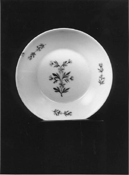 - NOTIZIE STORICO CRITICHE La marca "F&B" impresso sotto i pezzi non permette di ricondurre le tazze ed i relativi piattini ad alcuna manifattura. Le differenze di intensità di colore tra i diversi pezzi fa propendere per l'ipotesi che si tratti di prodotti piuttosto seriali, probabilmente di manifattura italiana, del primo quarto dell'Ottocento.\nIlaria De Palma