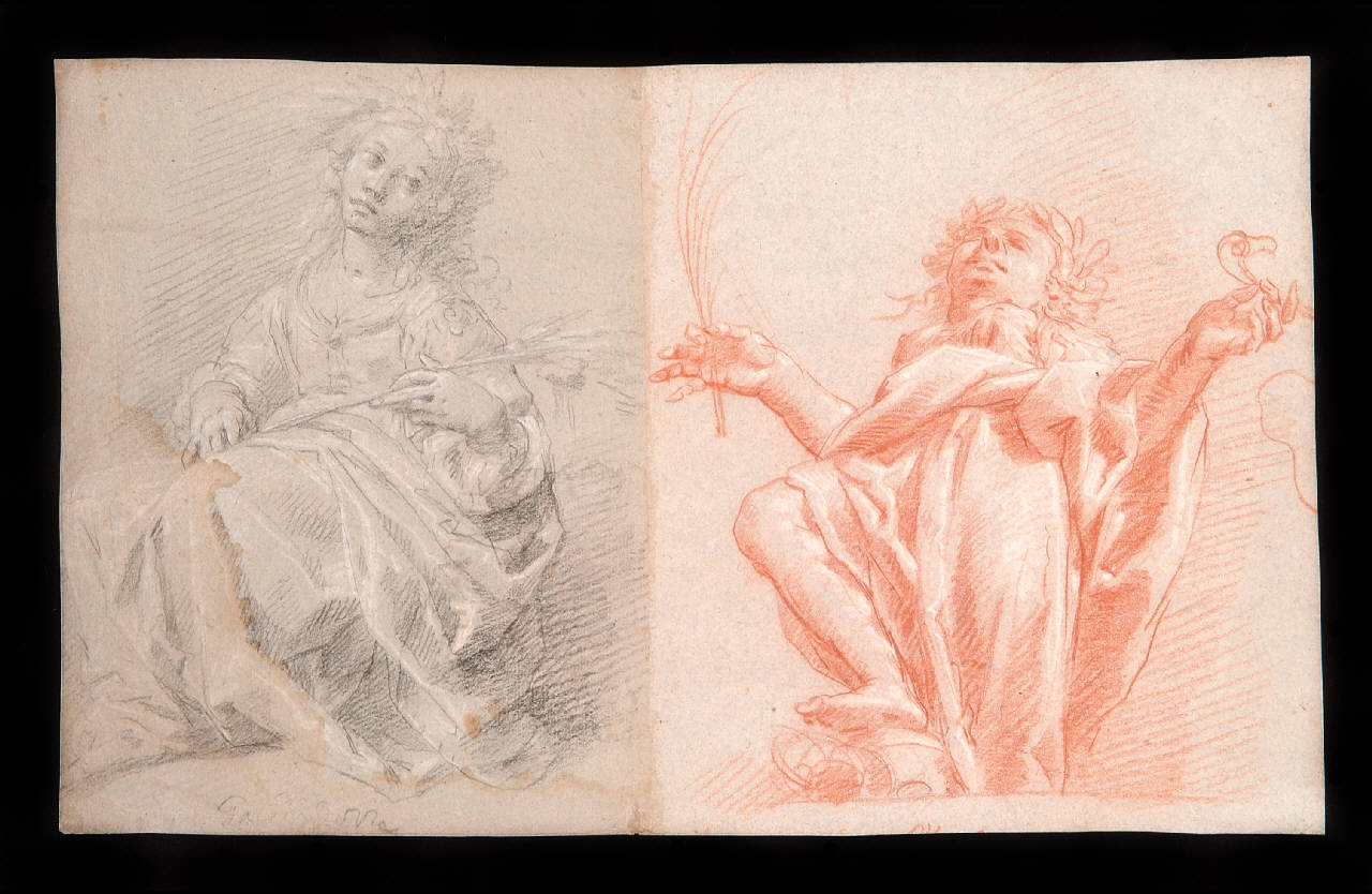 - NOTIZIE STORICO CRITICHE La figura di destra è da considerarsi uno studio per la figura di Torquato Tasso affrescata in Palazzo Moroni a Bergamo. Nell'affresco il poeta tiene un cartiglio con la scritta "Hyerusalem capta"\nM. Albertario