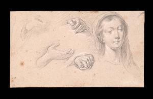 Studio di testa di Madonna, mani e piede